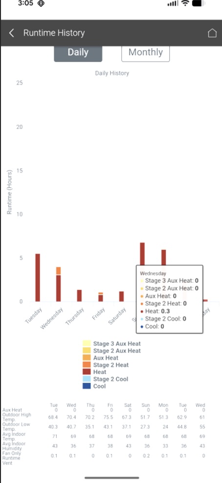 - Another evening their HVAC only ran 20 minutes after midnight while the outside temperatures overnight were in the 40’s.